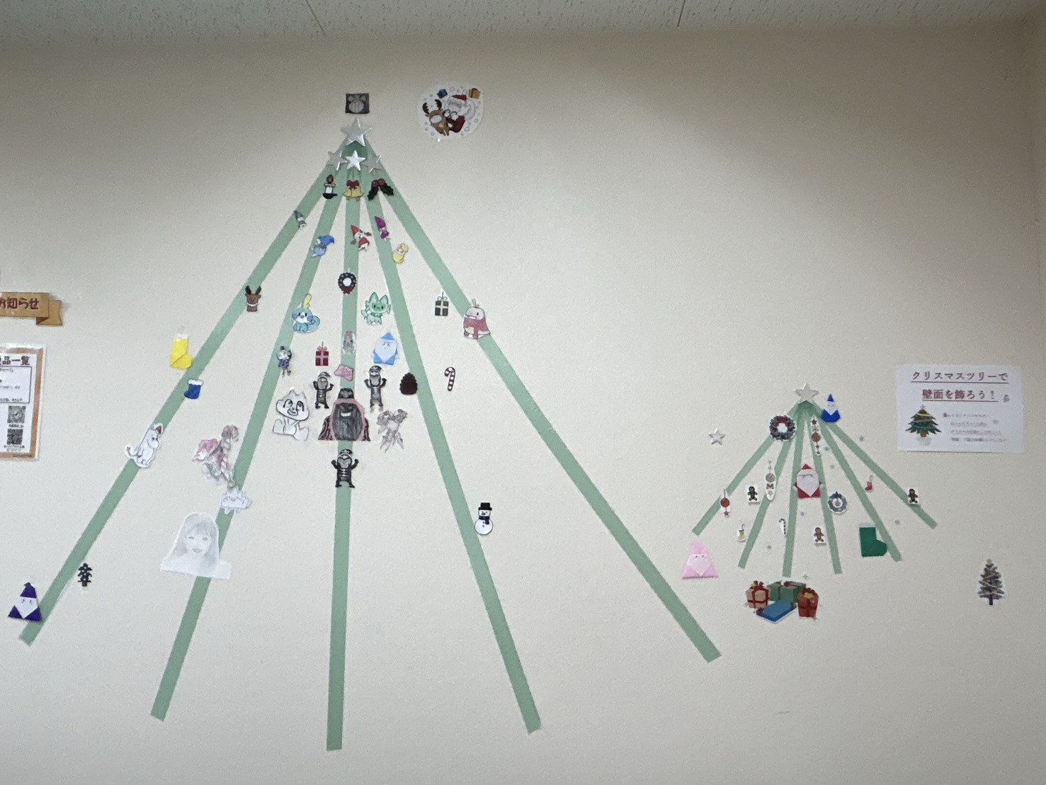 壁にツリーを作り、利用者様とオーナメントを作って飾っています🎄クリスマスに向けてどんどん賑やかになっていきますよ~!お楽しみに🌟