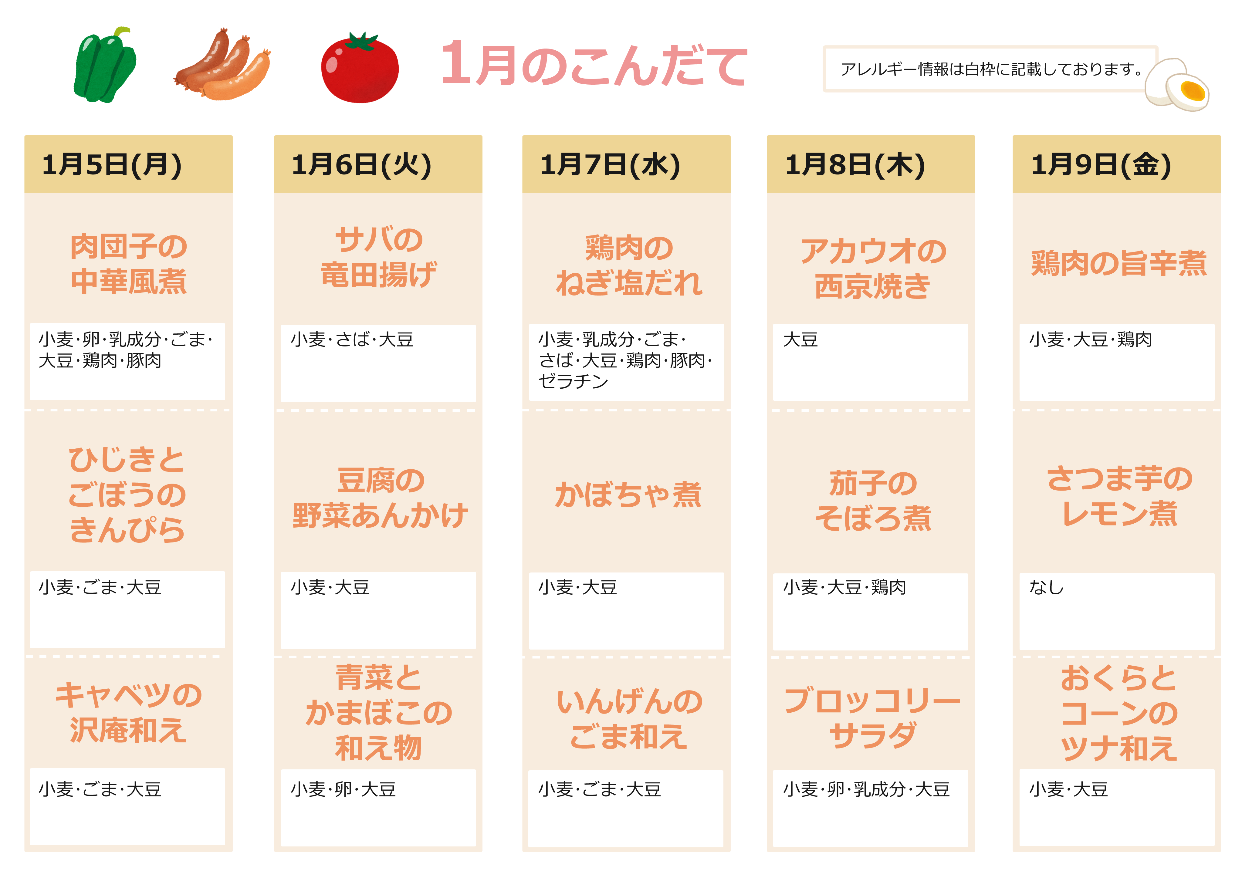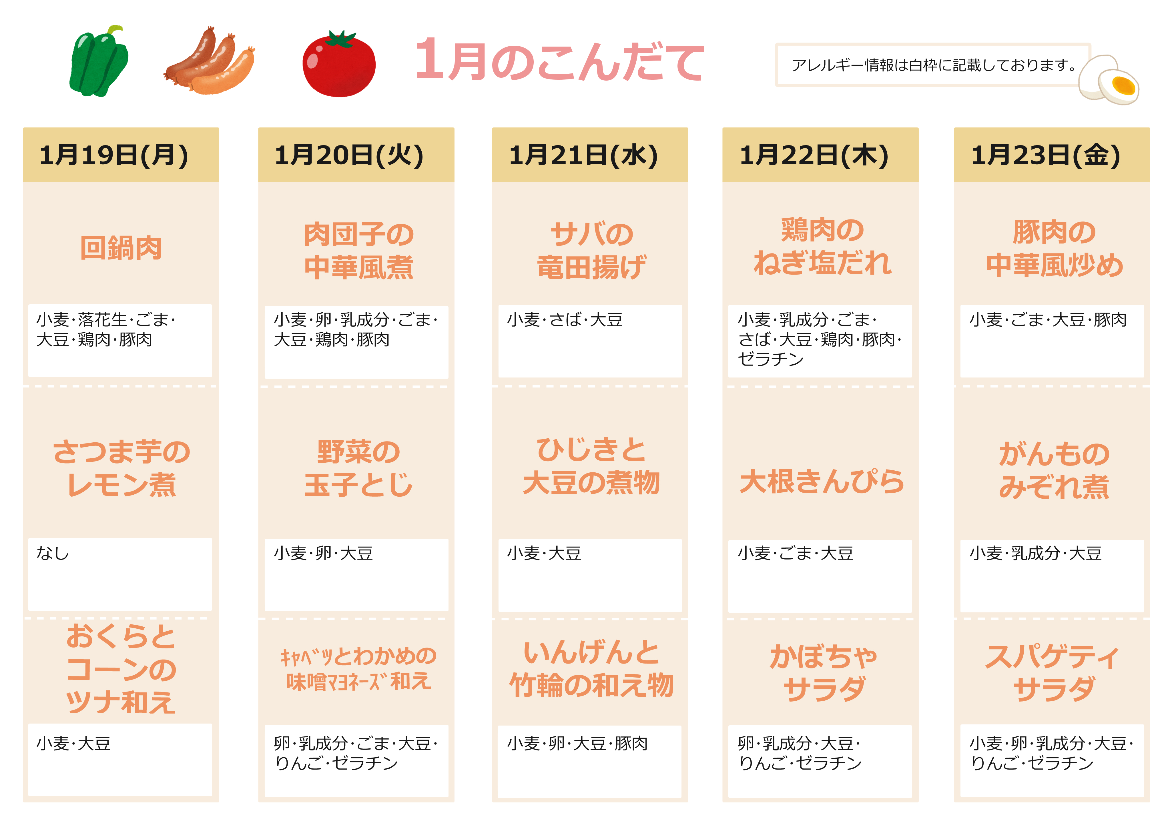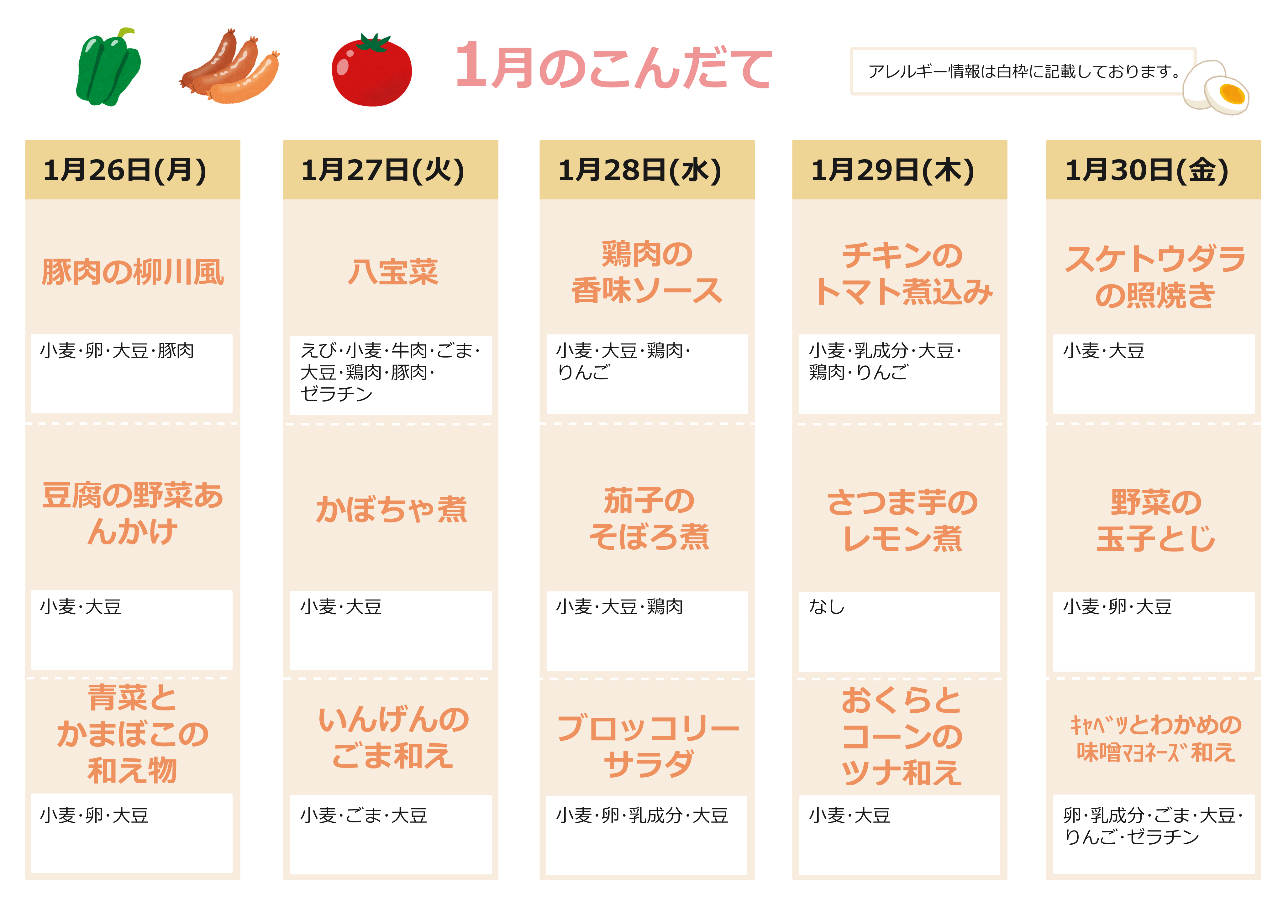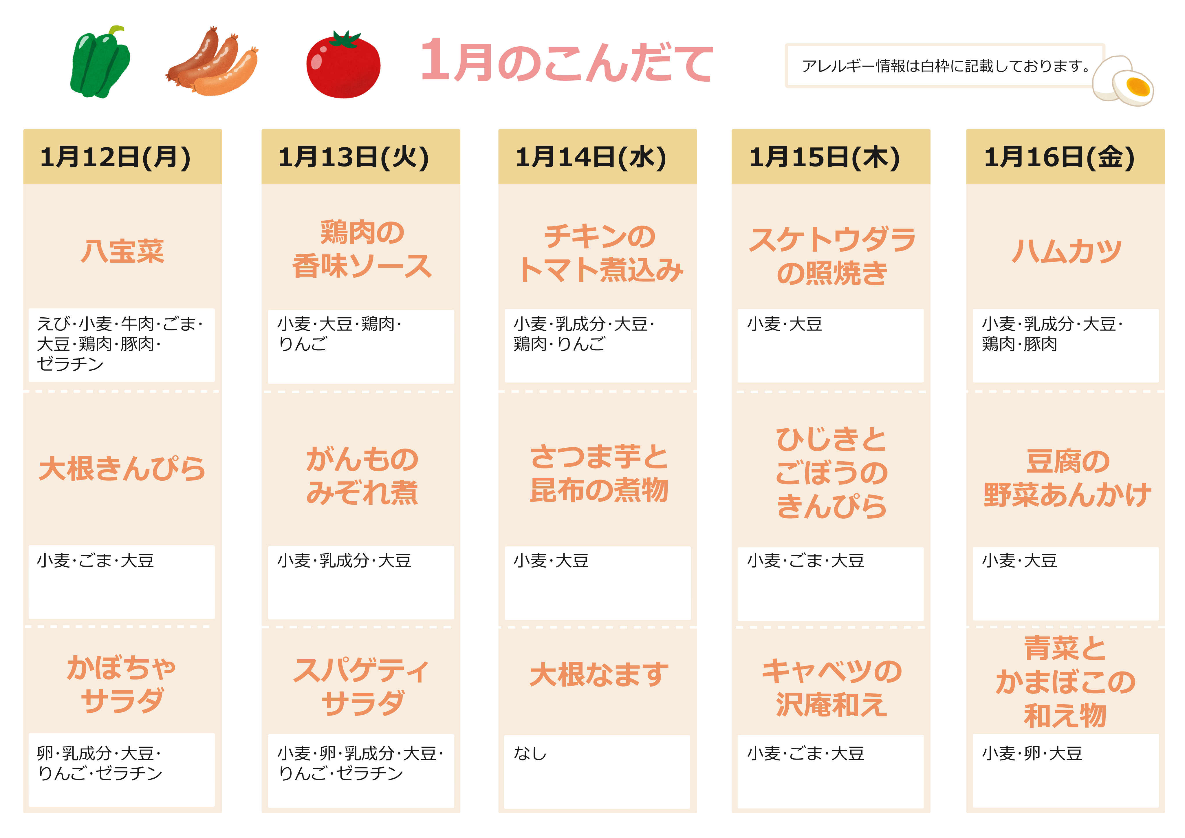 来年1月の昼食メニューをお知らせします。本格的に寒くなってきましたね🍃